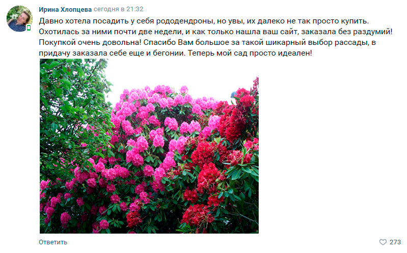 Bizning rododendronlarimiz sovuqqa chidamli, qishda ham gullaydi va alohida g'amxo'rlikka muhtoj emas.